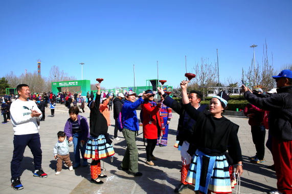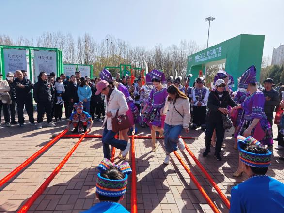 壮族竹竿舞、苗族芦笙、白裤瑶铜鼓舞……3月29日,在“广西三月三”即将到来之际,“潮玩三月三 相约游广西”文化旅游宣传暨非遗精品艺术展演(北京)活动走进北京市朝阳公园,通过非遗艺术表演、非遗技艺展示、非遗工艺品展览、非遗美食品鉴及精品旅游资源推介等精彩内容,为北京市民、游客带来了一场沉浸式“广西三月三”预告体验。