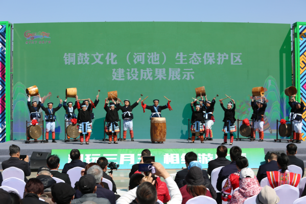 值得一提的是,此次活动还带来了一批来自铜鼓文化(河池)生态保护区的国家级、自治区级非遗项目。南丹白裤瑶铜鼓舞(勤泽格拉)由皮鼓指挥,铜鼓与风桶共鸣的独特演奏方式,令现场观众耳目一新。定音铜鼓演奏,声音清亮,如鸣佩环,十分悦耳动听。伴随着鼓声,南丹白裤瑶的非遗传承人们为现场观众呈现了少数民族体育活动——打陀螺,精彩的炫技动作收获了阵阵掌声和欢呼声。