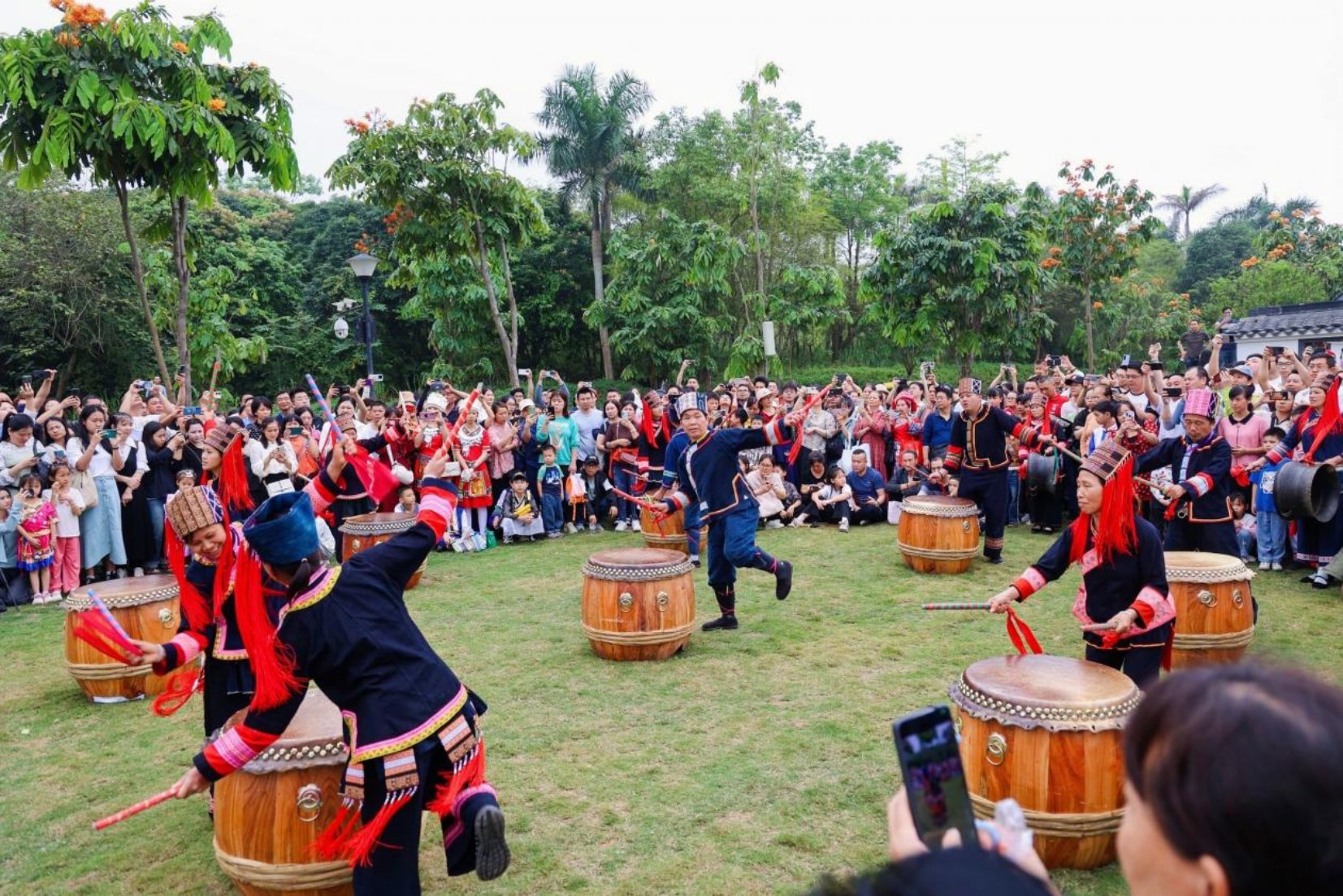 还未步入“广西三月三·八桂嘉年华”的街区大门,阵阵鼓声便已从远处悠悠传来。在“八桂鼓韵”民族习俗活动展演区,壮族铜鼓舞、瑶族长鼓舞热闹欢腾,悠扬的山歌时而高遏行云,时而百转千回,令人陶醉。热情好客的侗族同胞身着节日盛装,弹起欢快的琵琶,端起热气腾腾的油茶,唱起动听的侗歌,欢迎远道而来的客人。来往游客被侗族群众的热情好客所感染,纷纷上前互动,感受非遗歌舞表演的独特魅力。