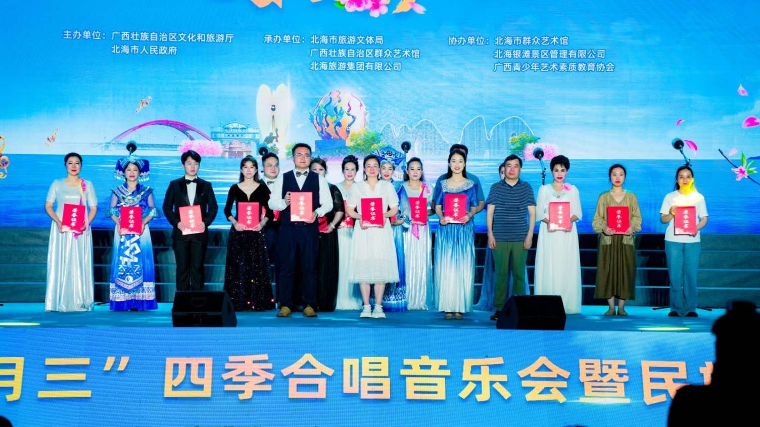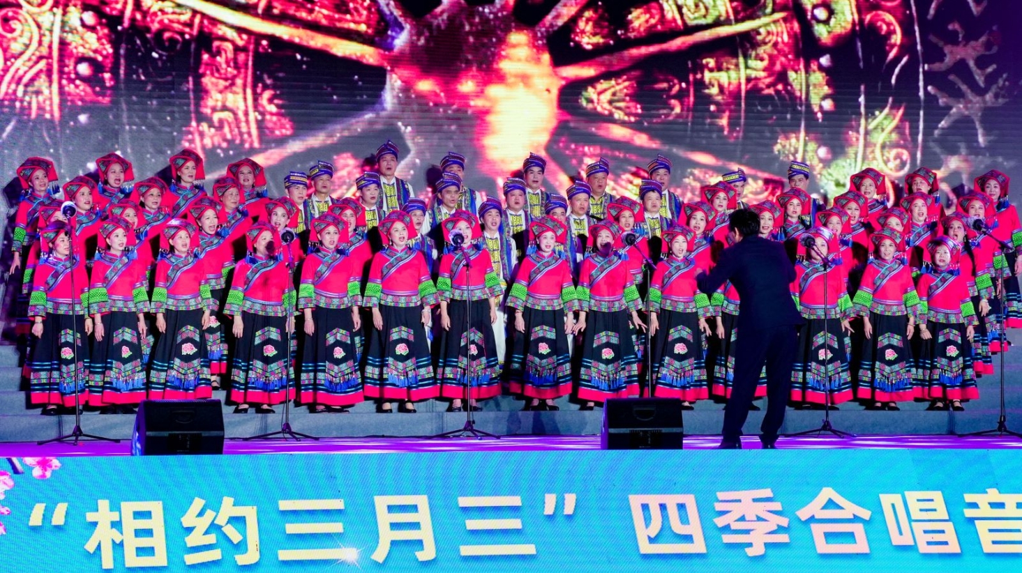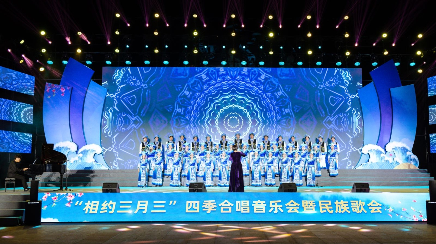 用歌声讲好中国故事,传唱民族华章,凝聚奋进力量,展现文旅新气象,繁荣群众文化。4月20日晚,“相约三月三”四季合唱(春之声)音乐会暨民族歌会活动在北海市银滩潮雕广场举行。