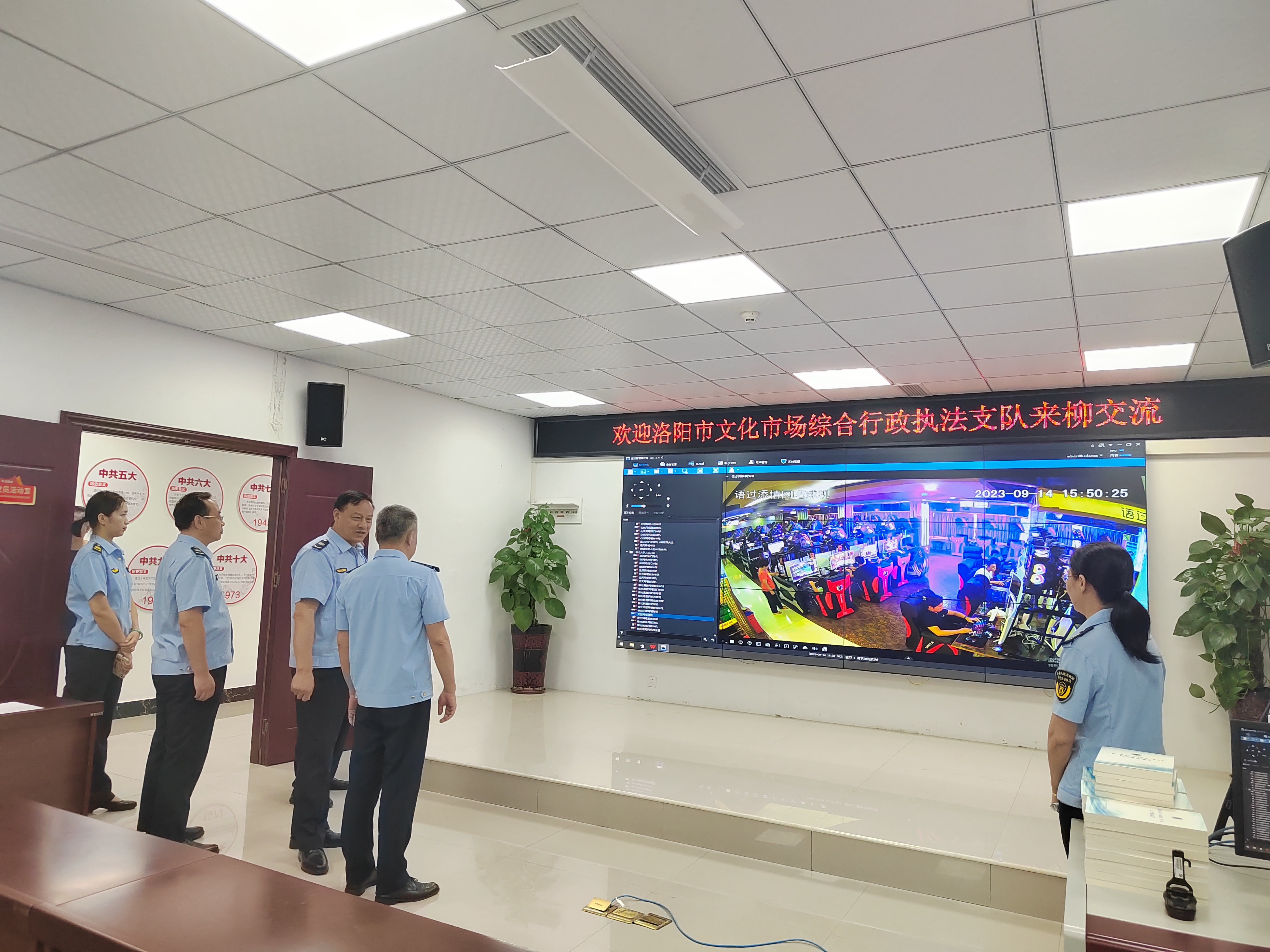 期间,洛阳市支队参观了柳州市互联网上网服务营业场所视频监控平台以及柳州工业博物馆、白莲洞洞穴科学博物馆、紫荆花文化创意廊展览馆,调研了柳州市最大的剧本娱乐经营场所柳北文创园等文化娱乐场所,并向柳州市支队赠送了《文化市场综合行政执法手册》。双方针对两市文化市场执法监管的疑难问题进行了面对面座谈,互相介绍本单位的执法改革、队伍建设、执法办案、市场监管的基本情况及存在问题,探讨文化市场新业态执法的难点和解决措施,交流运用信息化手段辅助未成年保护工作的经验做法,深入讨论文化旅游执法领域遇到的问题和困惑,交流经验做法,为进一步开展交流协作,达成共识。