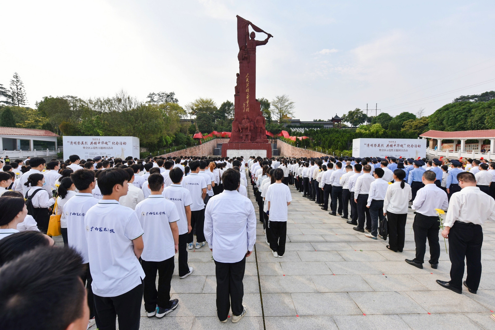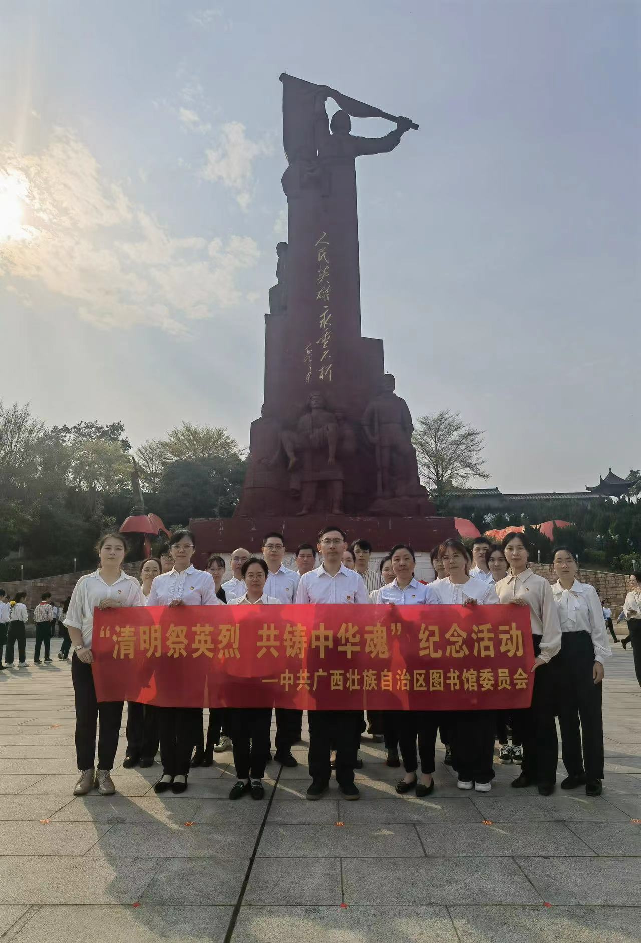 为祭奠和缅怀革命先烈,营造全社会崇尚英烈、学习英烈、捍卫英烈、关爱烈属的浓厚氛围,教育激励干部弘扬英烈精神,凝聚中华民族伟大复兴磅礴力量,4月2日上午,广西图书馆组织党员、团员代表20人到自治区烈士陵园参加“清明祭英烈 共铸中华魂”纪念活动暨全区示范性主题团日活动。