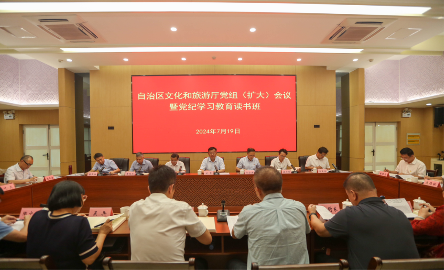 自治区文化和旅游厅党组(扩大)会议暨党纪学习教育读书班现场