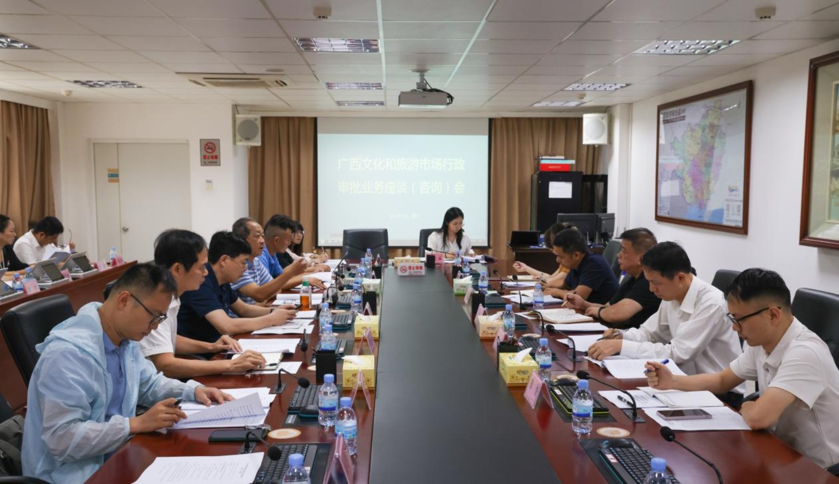 为深入贯彻党的二十届三中全会精神,认真落实自治区党委、政府创新优化营商环境及推进文化和旅游业高质量发展有关部署,进一步优化企业创业创新的营商环境,推动文旅产业融合高质量发展,7月23日,自治区文化和旅游市场行政审批业务座谈(咨询)会在南宁召开。自治区、南宁市及青秀区文化和旅游市场行政审批工作人员代表,广西文化娱乐行业协会、旅游行业协会和演出行业协会有关专家和部分企业代表参加会议。