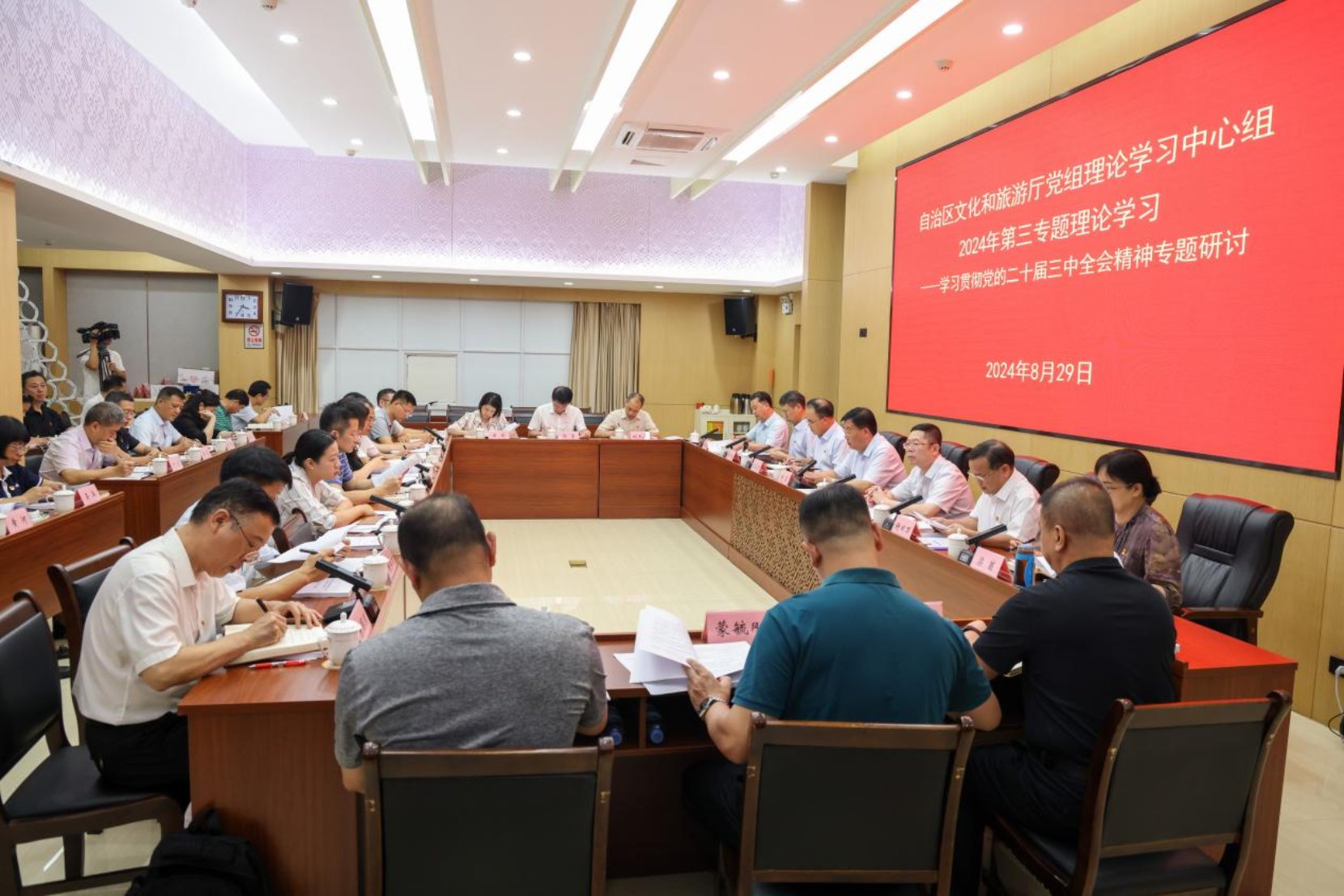 8月29日,自治区文化和旅游厅党组理论学习中心组开展2024年第三专题理论学习,厅党组书记甘霖主持会议并讲话。