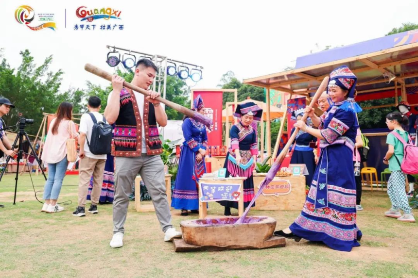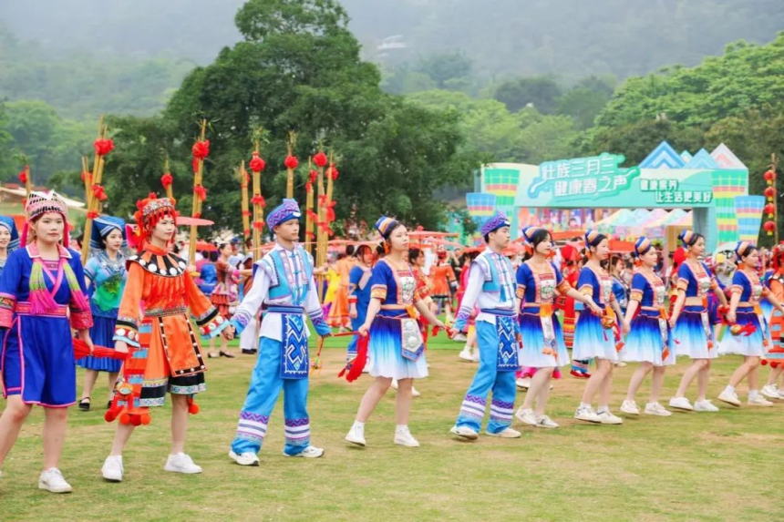 今年的“壮族三月三·八桂嘉年华”持续一个月,自治区将开展9项重点活动和“桂风壮韵浓”“民族体育炫”“相约游广西”“e网喜乐购”“和谐在八桂”五大板块共41个大类活动,全区基层群众“三月三”活动将达1000多场。其中,“桂风壮韵浓”“相约游广西”主题活动把传统非遗、民族文化、旅游新业态、文创潮玩等搬进青秀山主会场,为广大市民游客带来了沉浸式文旅互动体验、多元化非遗精品展示等游玩项目,丰富了“壮族三月三”文旅新体验。