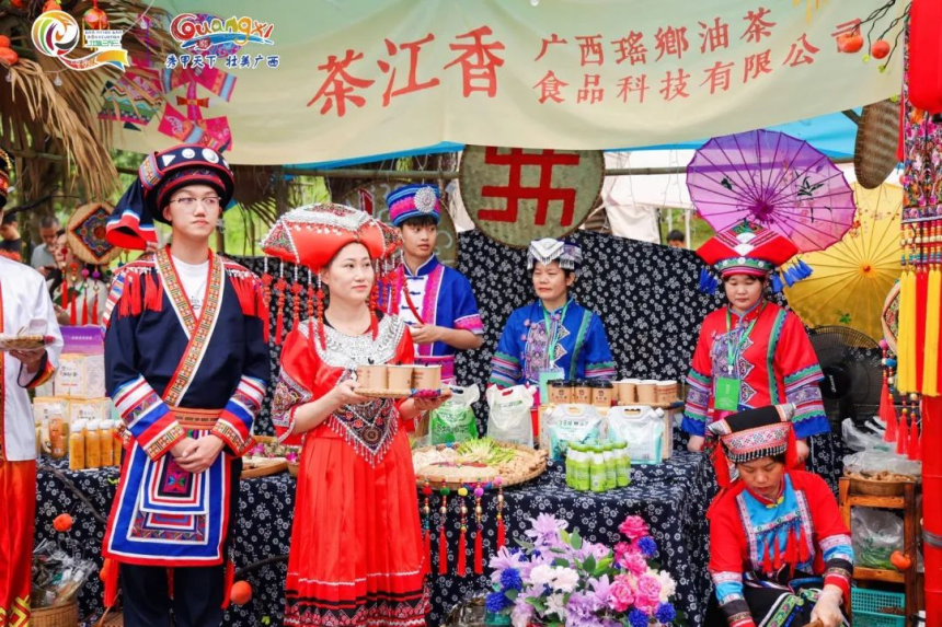 在此次青秀山主会场活动中,那里市集惊喜亮相,为广大游客带来了非遗美食、传统手艺、匠心文创、咖啡茶饮、艺术表演、技艺展示等多种业态。现场既有作为“中国茶习俗”的组成部分列入联合国教科文组织人类非物质文化遗产代表作名录的瑶族油茶习俗、国家级非遗代表性项目壮族天琴艺术、自治区级非遗代表性项目五色糯米饭制作技艺和隆林苗族刺绣,还有壮族歌舞、瑶族铃鼓等民族表演,一步一景,一步一歌,营造了一个集文化、艺术、潮流于一体的“文创+”沉浸式体验空间。