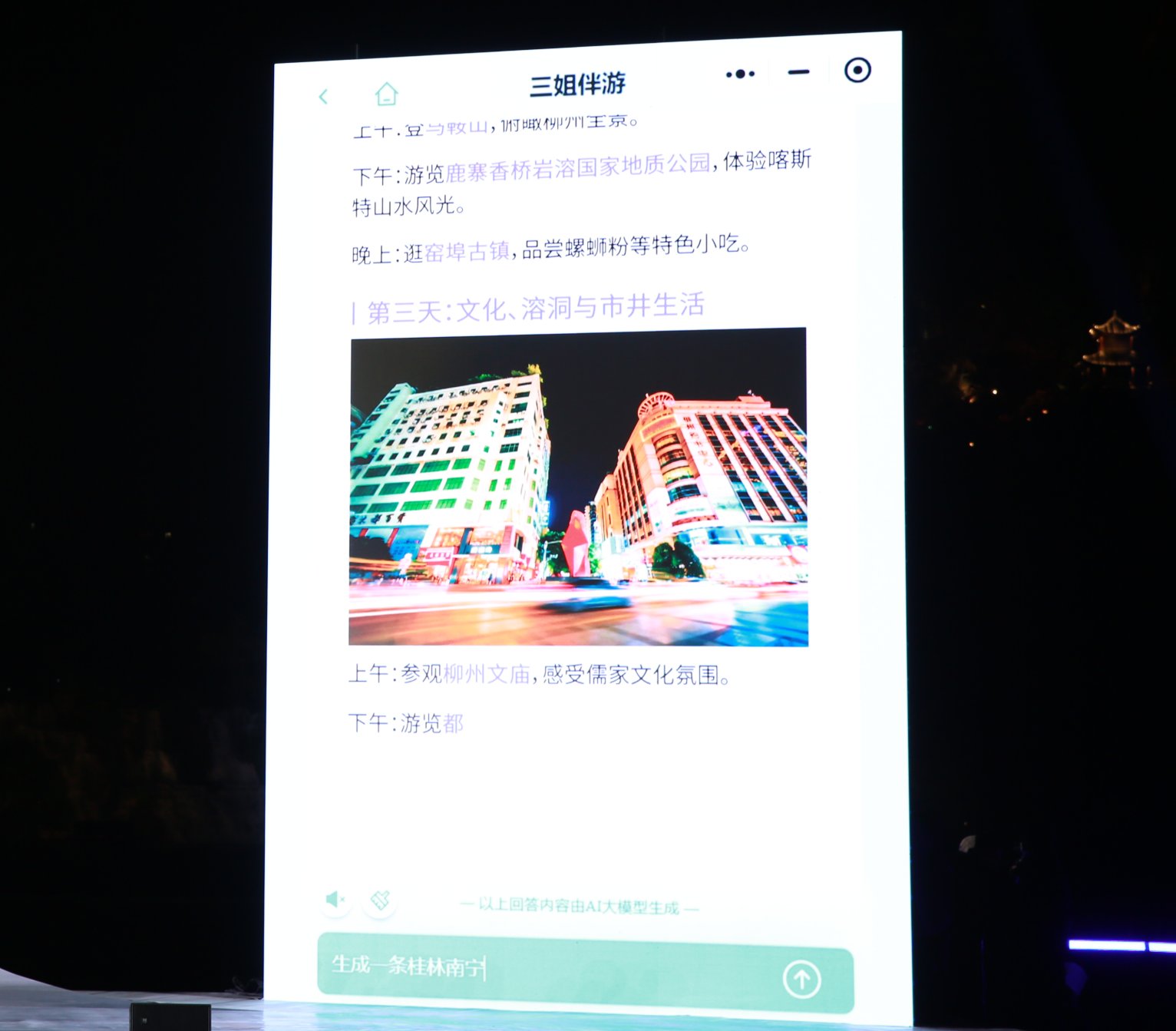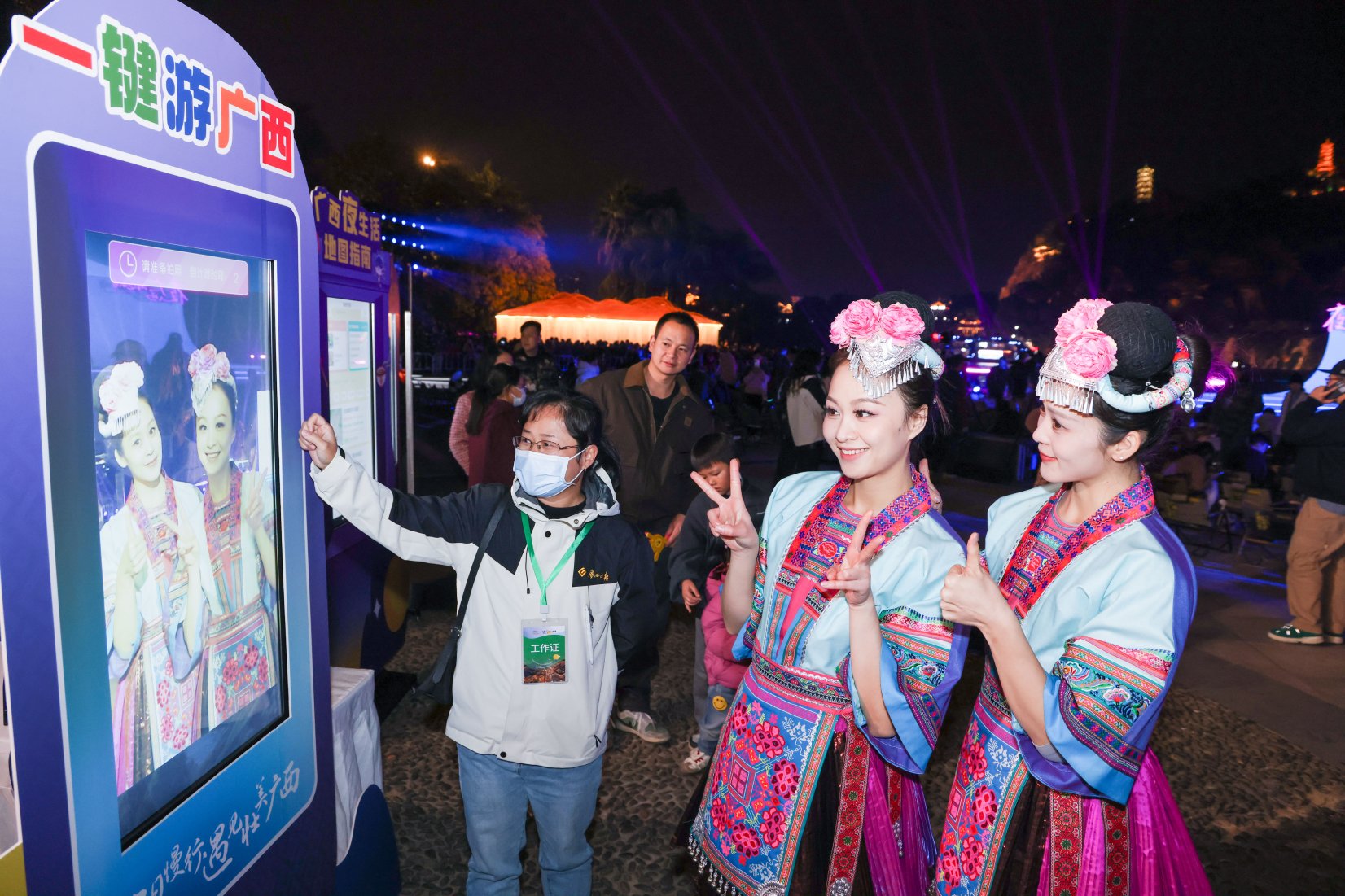 活动现场还精心打造了沉浸式互动体验区,包括“夜广西”心动美文取用墙、“夜广西”美文互动球、“三姐伴游”AI线路生成体验区、“我AI广西夜”光影互动站等,让观众在参与中感受文学的魅力与科技的温度。