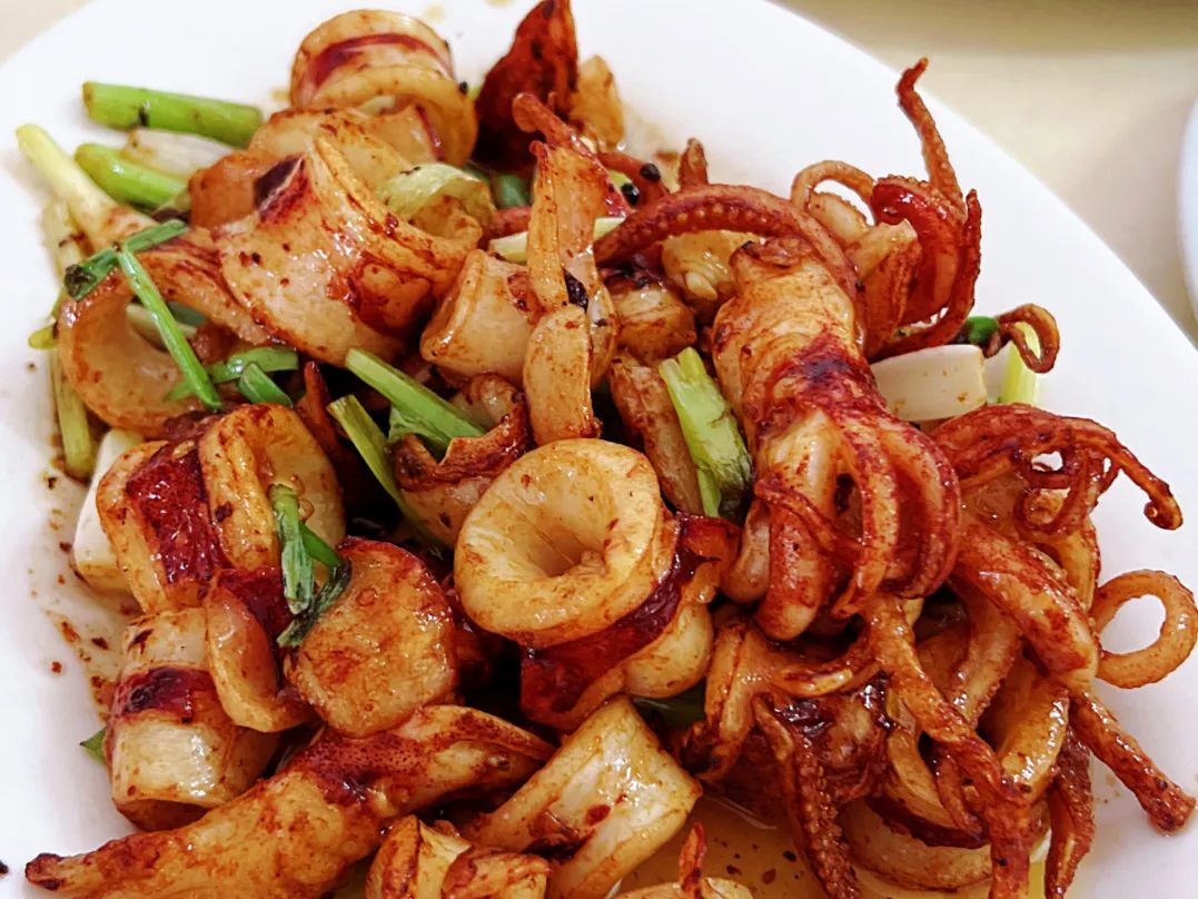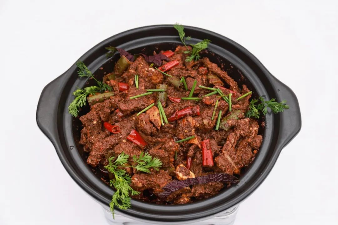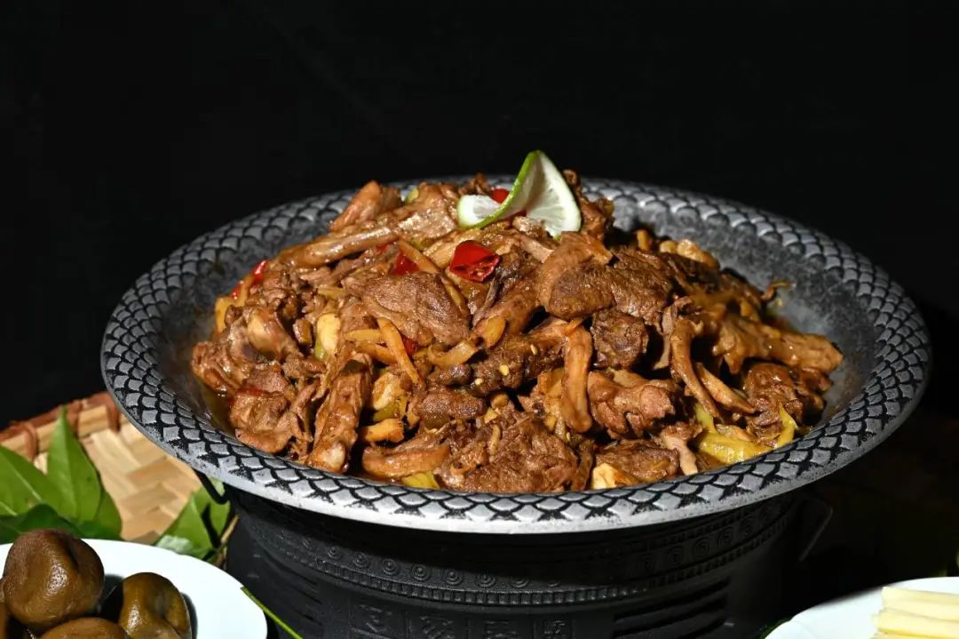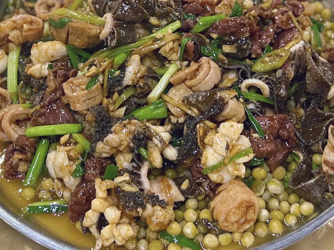 牛肚牛肠加大量姜丝爆炒,姜辣味中和内脏腥臊,暖胃驱寒。