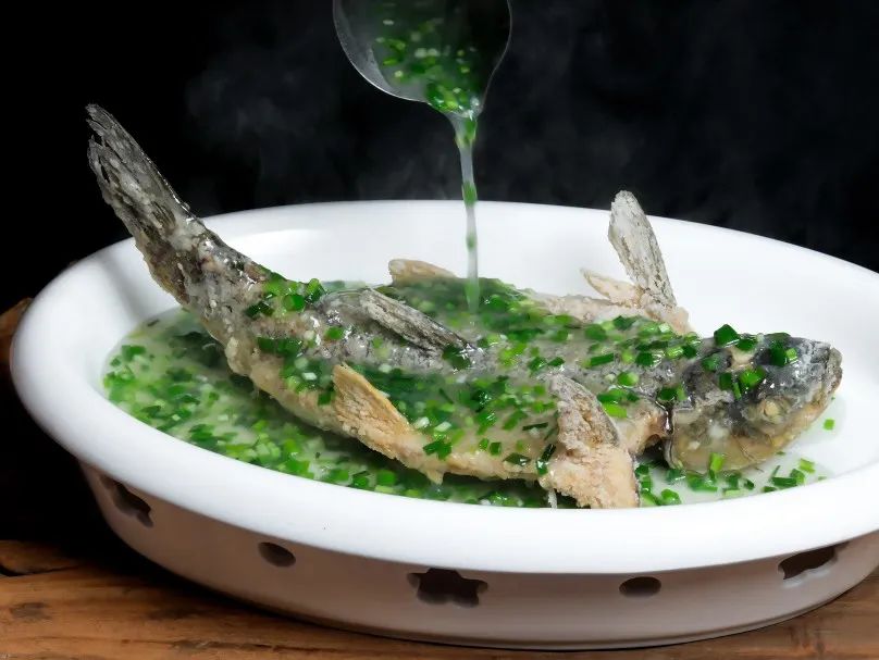 小活鱼放血薄切,拌入紫苏、花生、酸荞头,酸辣开胃。