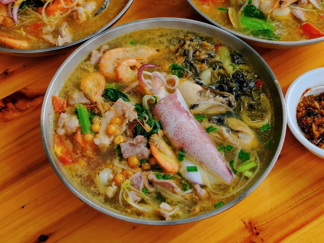 虾蟹螺贝汇入酸辣汤,嗦粉饮汤双倍满足,中越边境的味觉混血儿。