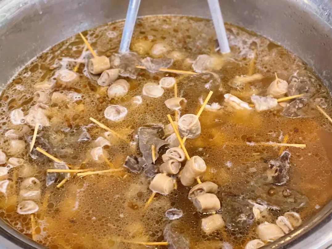 牛杂与酸姜、酸萝卜同煮,汤底加入黄皮果酱,酸香独特。