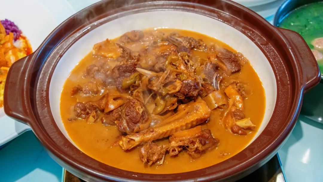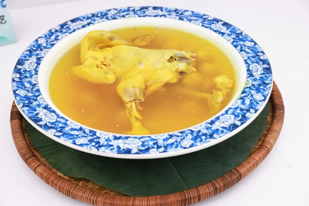 本地土鸡与老黄姜炖煮三小时,汤色金黄,驱寒滋补。