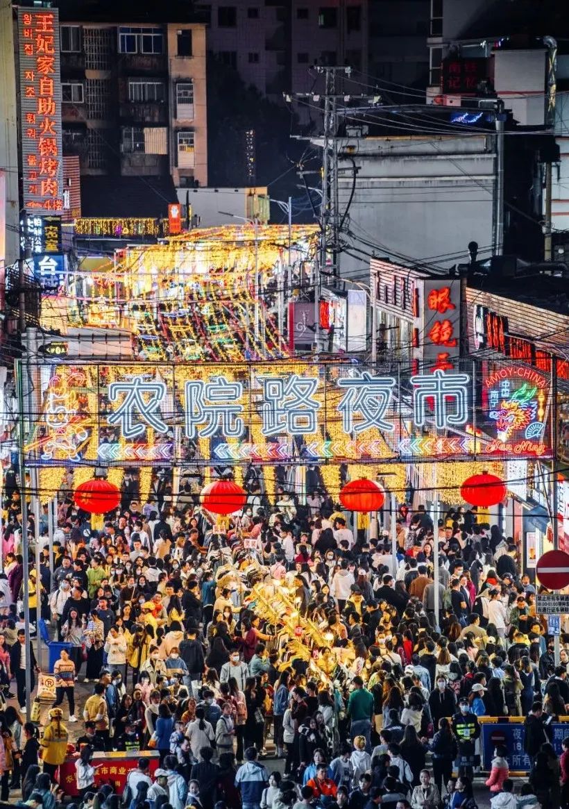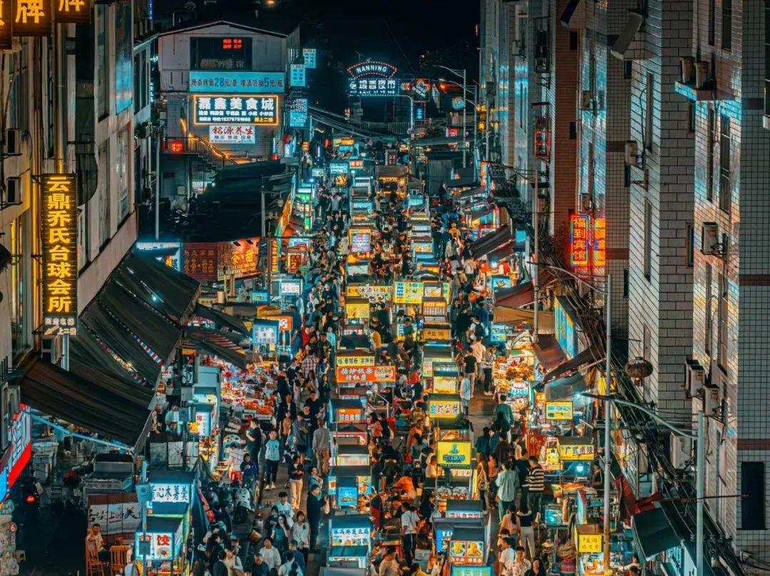 夜晚的商圈、市集依旧人来人往;