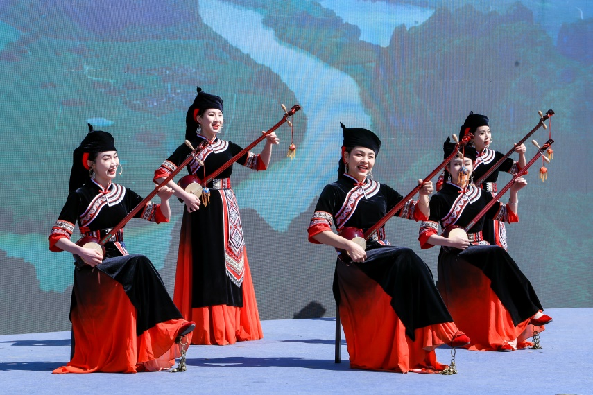 值得一提的是,此次活动还带来了一批来自铜鼓文化(河池)生态保护区的国家级、自治区级非遗项目。南丹白裤瑶铜鼓舞(勤泽格拉)由皮鼓指挥,铜鼓与风桶共鸣的独特演奏方式,令现场观众耳目一新。定音铜鼓演奏,声音清亮,如鸣佩环,十分悦耳动听。伴随着鼓声,南丹白裤瑶的非遗传承人们为现场观众呈现了少数民族体育活动——打陀螺,精彩的炫技动作收获了阵阵掌声和欢呼声。