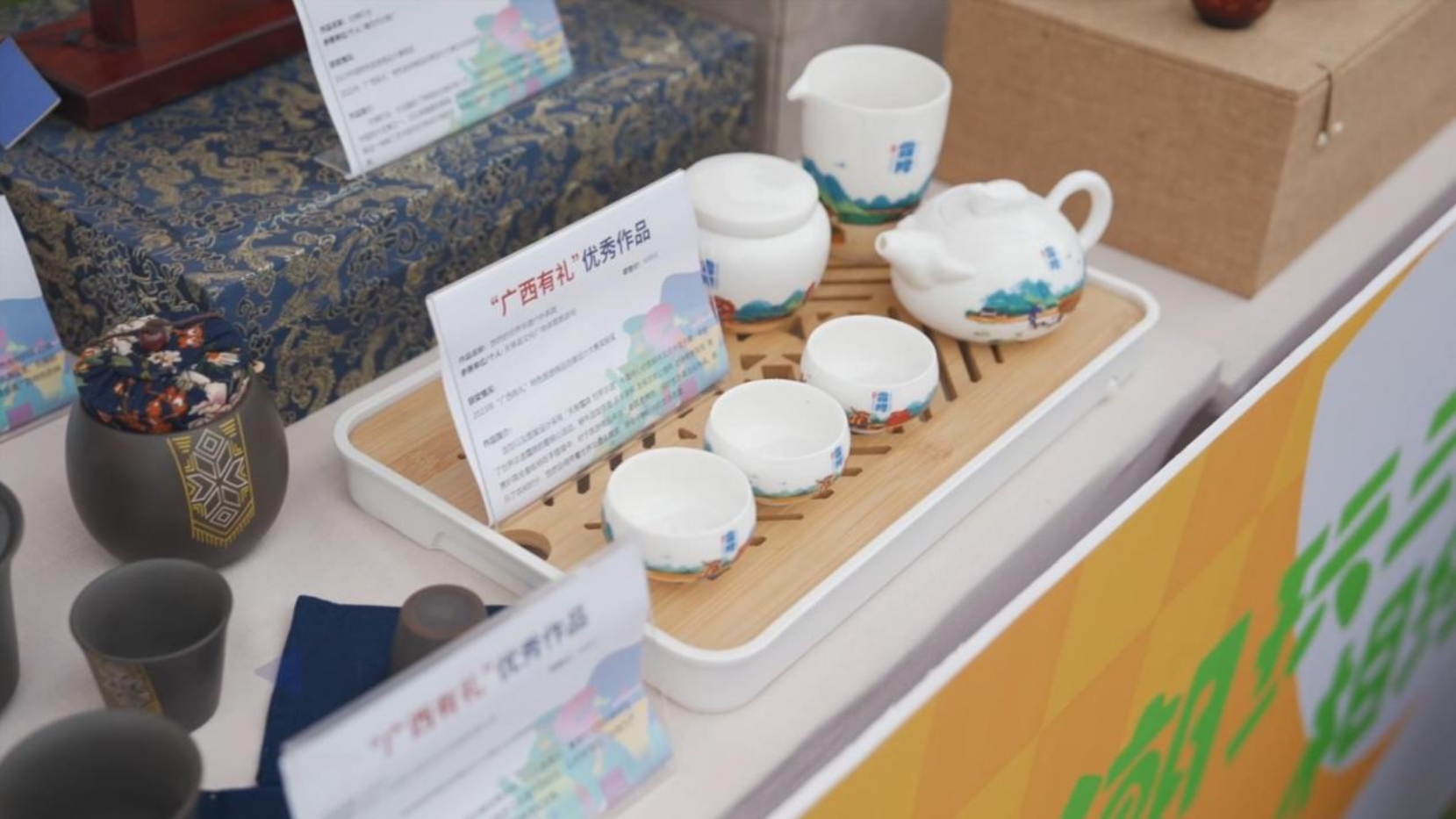 告别旅拍快闪店,走上一个斜坡,游客便来到了“广西有礼”旅游商品展销区。从充满民族特色的绣球、麽乜、壮锦、瑶族刺绣、马尾绣、扎染、团扇等伴手礼,到拥有浓厚滨海风情的南珠以及国家级非遗代表项目“北海贝雕”“角雕”等手工艺品,在这里,每个人都能找到最能代表广西的“地道风物”。