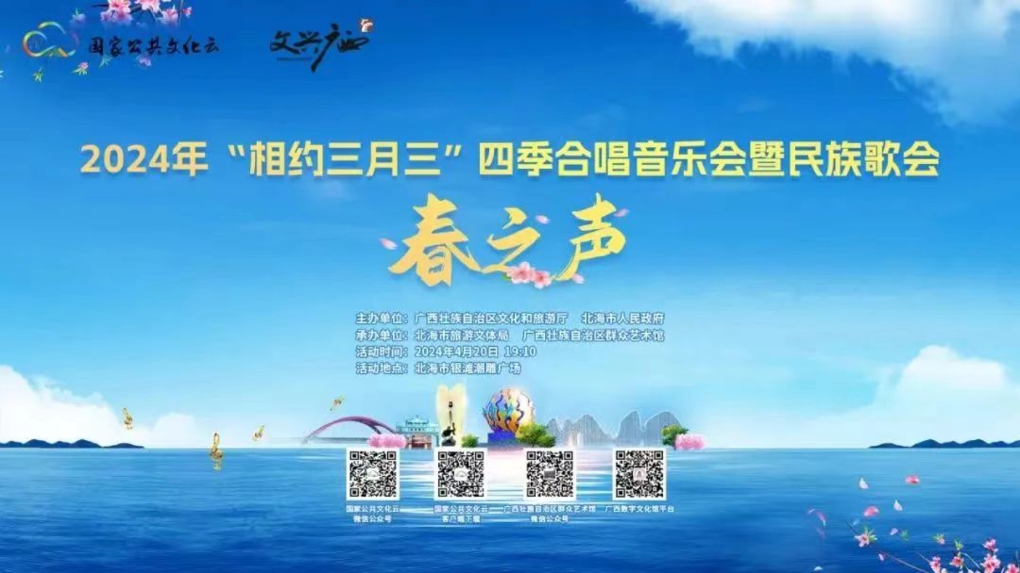 用歌声讲好中国故事,传唱民族华章,凝聚奋进力量,展现文旅新气象,繁荣群众文化。4月20日晚,“相约三月三”四季合唱(春之声)音乐会暨民族歌会活动在北海市银滩潮雕广场举行。