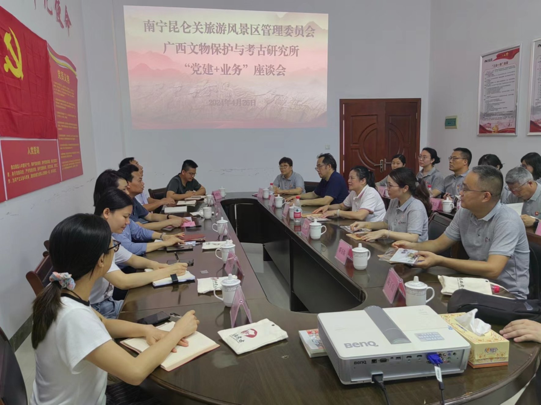 随后,广西文物保护与考古研究所党支部和昆仑关旅游风景区管委会党支部开展工作座谈,达成共建共识:一是以习近平新时代中国特色社会主义思想为指导,巩固拓展主题教育成果,开展党支部共建;二是在党建工作、文物保护、公众考古等方面加强合作交流,提高学习实效,促进党建与业务的深度融合;三是发挥业务优势,整合专家资源,为昆仑关遗址保护及利用提供指导及帮助。