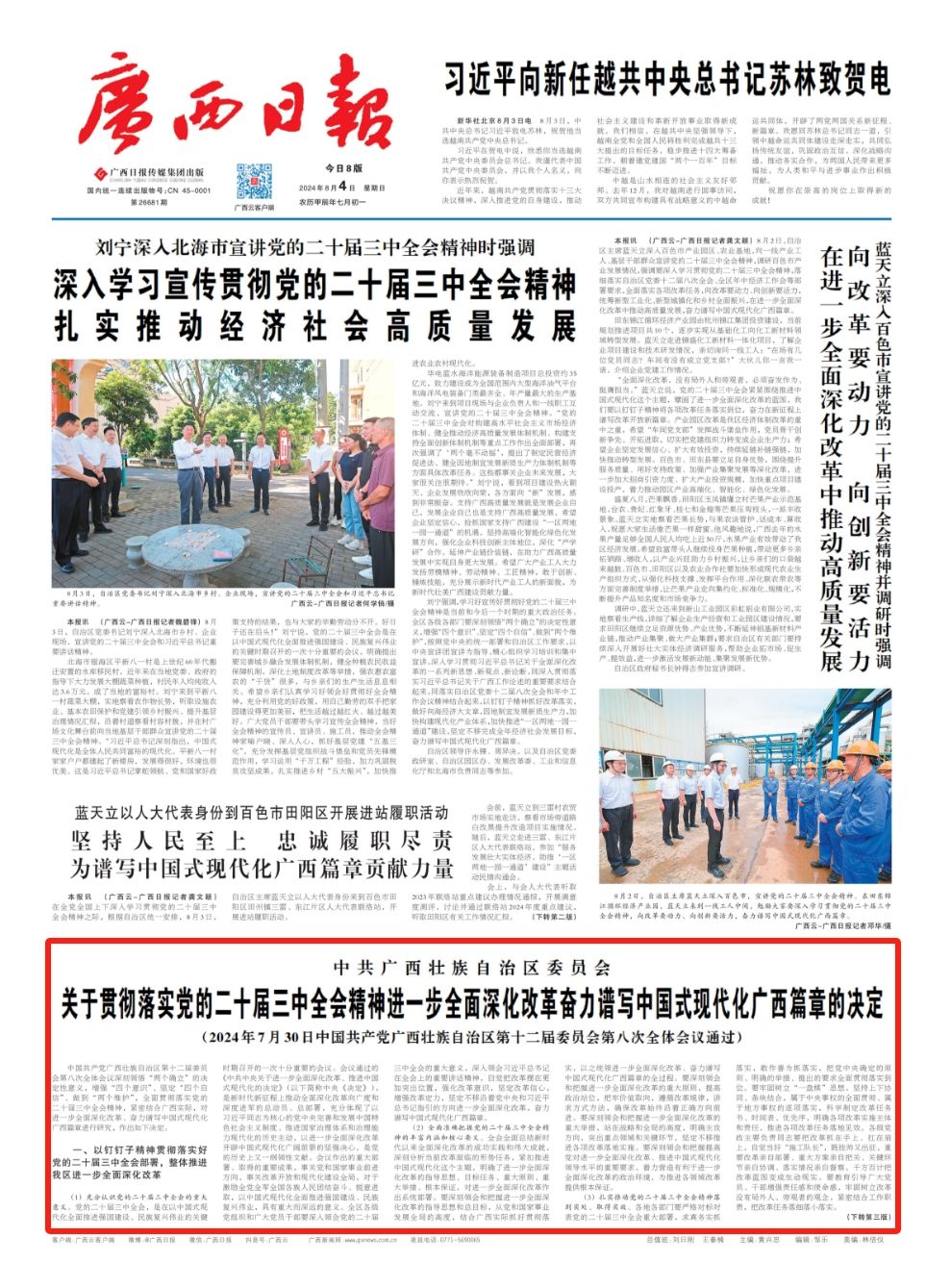 (2024年7月30日中国共产党广西壮族自治区第十二届委员会第八次全体会议通过)