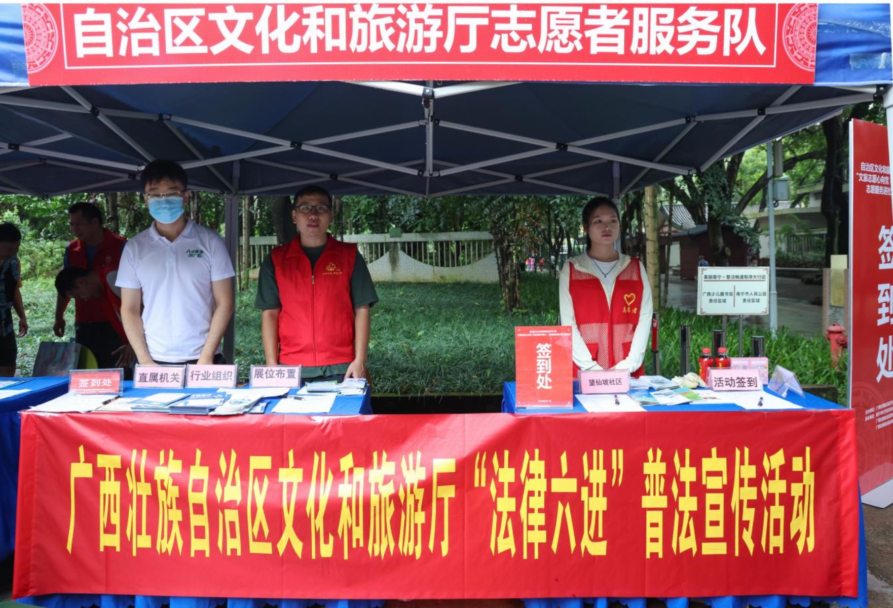 为宣传贯彻党的二十届三中全会精神,积极响应习近平总书记关于推动志愿服务体系建设和优化文化服务、文化产品供给的重要指示,8月11日,自治区文化和旅游系统组织志愿者服务队在南宁市人民公园举办了“文旅志愿心向党 行业奉献守初心”志愿服务进社区主题活动。来自自治区文化和旅游厅机关、厅直属单位、文化和旅游行业社会组织、南宁市兴宁区民生街道望仙坡社区的近百名志愿者参与活动。