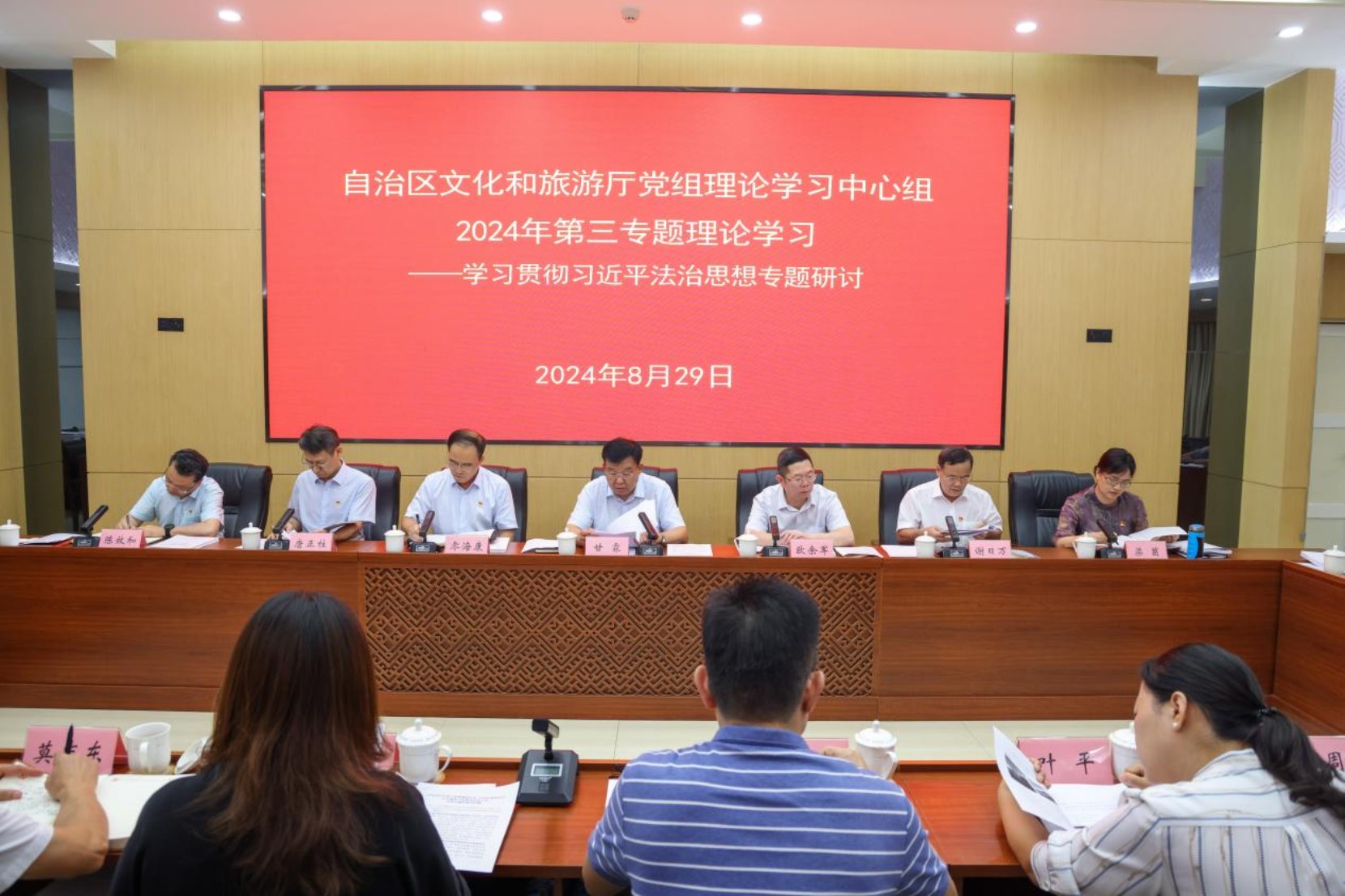 8月29日,自治区文化和旅游厅党组理论学习中心组开展2024年第三专题理论学习,厅党组书记甘霖主持会议并讲话。