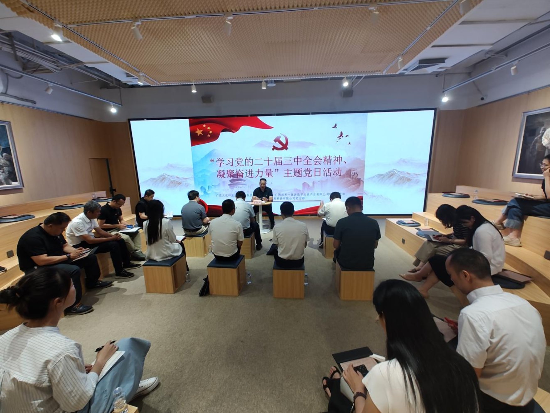 为深入学习贯彻习近平新时代中国特色社会主义思想,认真学习贯彻党的二十届三中全会精神,激励党员干部把思想和行动统一到全会精神上来,9月27日,自治区文化和旅游厅信息科技教育处党支部、广西旅发一键游数字文旅产业有限公司联合党支部与广西昊象信息科技有限公司党支部赴广西新媒体中心开展“深学全会精神 激发奋进力量”联学共建主题党日活动。