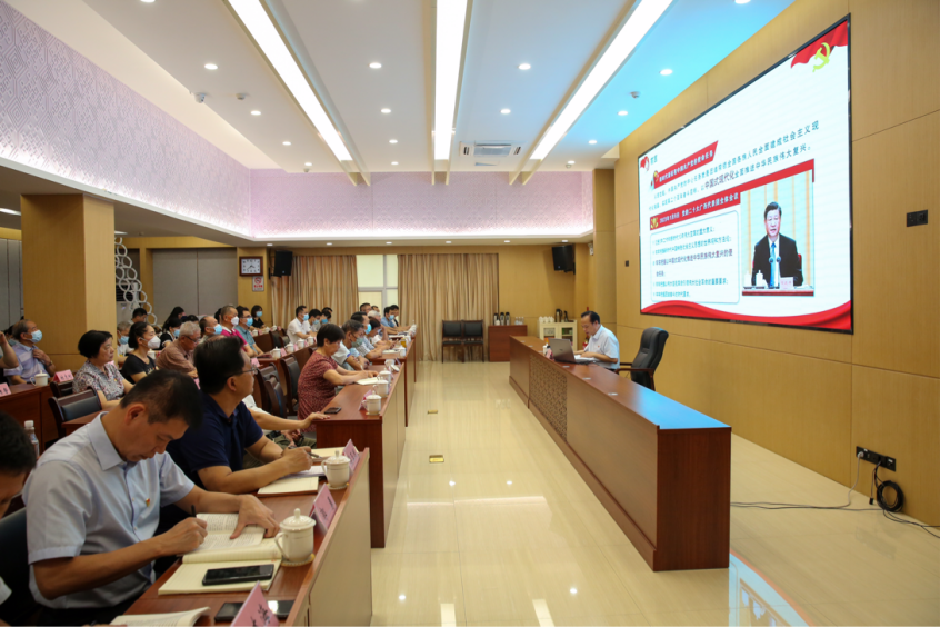 厅机关政策法规处、人事处、资源开发处、机关党委、离退休人员工作处、广西民族文化艺术研究院、广西旅游规划设计院等7个党支部的全体党员,以及离退休第三党支部部分党员现场听课。