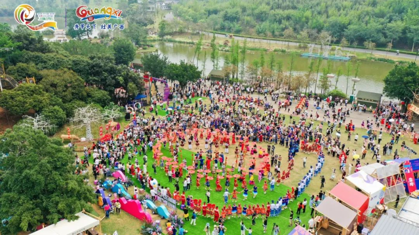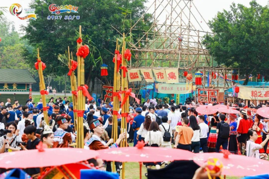 今年的“壮族三月三·八桂嘉年华”持续一个月,自治区将开展9项重点活动和“桂风壮韵浓”“民族体育炫”“相约游广西”“e网喜乐购”“和谐在八桂”五大板块共41个大类活动,全区基层群众“三月三”活动将达1000多场。其中,“桂风壮韵浓”“相约游广西”主题活动把传统非遗、民族文化、旅游新业态、文创潮玩等搬进青秀山主会场,为广大市民游客带来了沉浸式文旅互动体验、多元化非遗精品展示等游玩项目,丰富了“壮族三月三”文旅新体验。