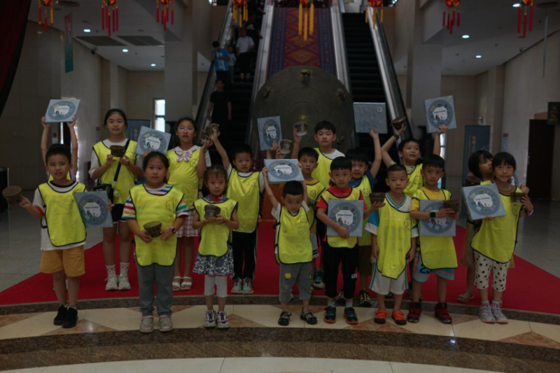另一边,《穿越时空的铜鼓》研学活动受到孩子们的喜爱,“八种类型!”“累蹲蛙!”……孩子们积极参与问答互动,场面有趣又生动,通过“铜鼓文化陈列”看展览听讲解、《穿越时空的铜鼓》绘本趣味课堂、铜鼓折纸拼装手作等系列学习体验,将铜鼓文化及内涵寓教于乐,把民族自豪感和文化自信的种子播撒在孩子们心田。