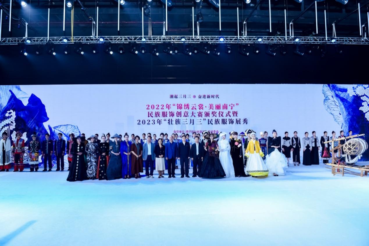 颁奖结束之后,主办方还举行了2023年“壮族三月三”民族服饰展秀活动。展演共分为多民族收藏级服饰秀、香云纱非遗时尚服饰秀、广西传统民族服饰秀、2022年南宁市“锦绣云裳·美丽南宁”民族服饰设计大赛入围服饰秀等板块,突显了“传统与新潮”的融合,观众既能欣赏到民族文化特别是非遗传统技艺的独特魅力,又能感受到传统与新潮交融的创新之美,领略到广西文化之美、民族之美、生活之美。