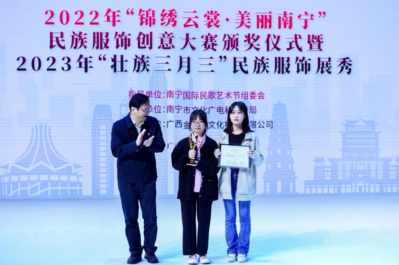 近年来,南宁市文化广电和旅游局先后举办了“2019年精彩广西·民族服饰创意大赛”和2022年“锦绣云裳·美丽南宁”民族服饰设计大赛。其中,2022年“锦绣云裳·美丽南宁”民族服饰设计大赛,共收到全国各地参赛者投稿的参赛作品283组、服饰设计图样1031套。参赛作品不仅出自国内知名服装院校以及企业在职设计师,还有来自民族村寨服务乡村振兴一线的新型农民作品,彰显民族传统制衣技艺守正创新、传承发展的活力,助力民族传统服饰“活起来”“火起来”。
