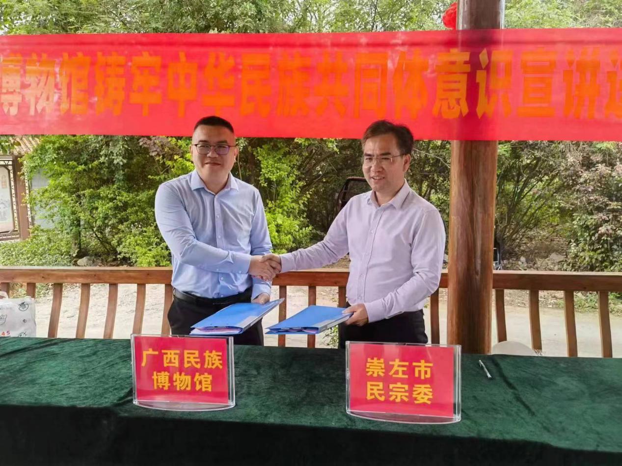 4月28日,广西民族博物馆与崇左市民族宗教事务委员会签署了“共同建设铸牢中华民族共同体意识教育实践基地”协议,这是全区首家馆市共建的铸牢中华民族共同体意识教育实践基地。