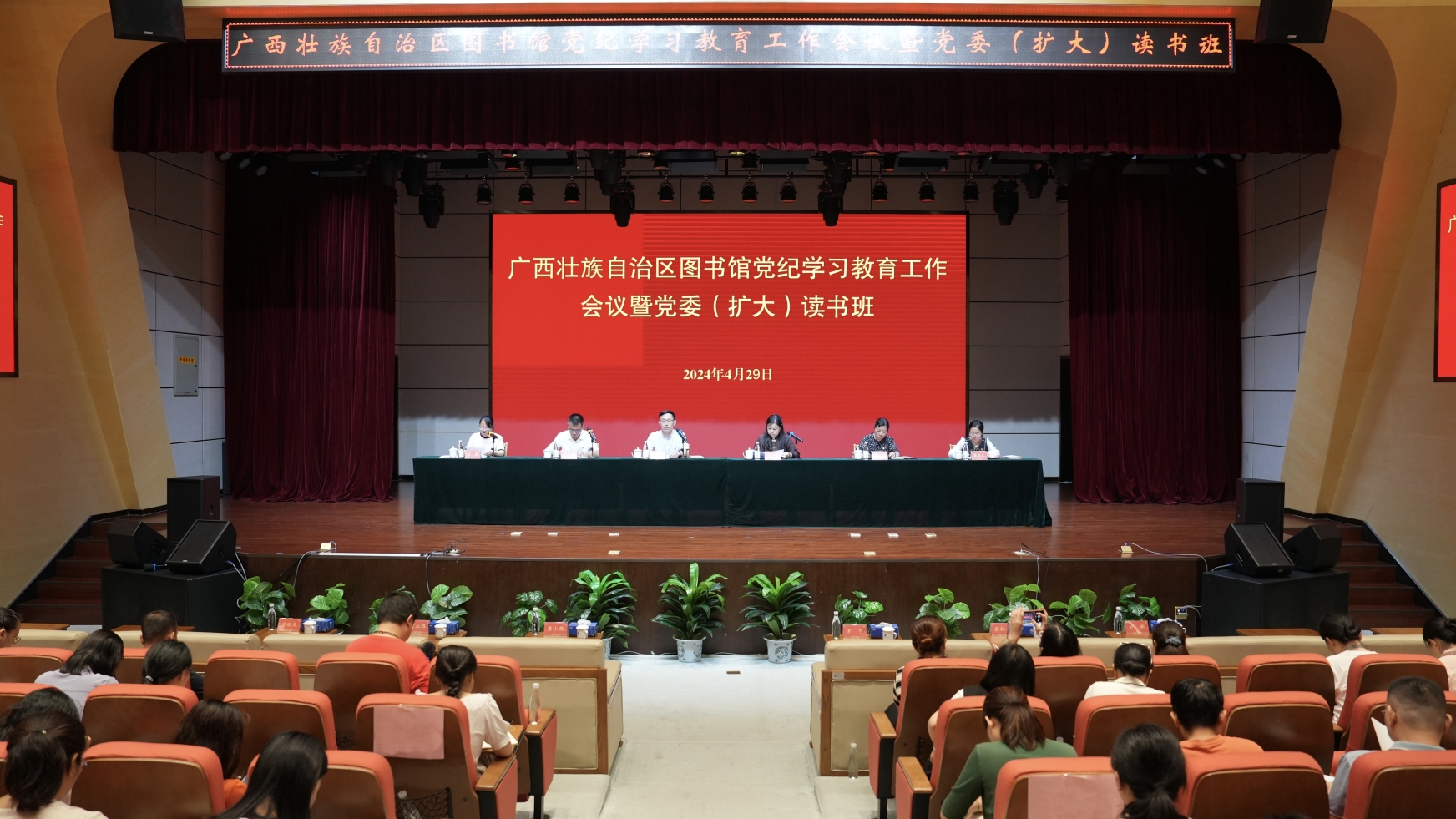 为全面贯彻落实中央关于开展党纪学习教育的有关精神,按照自治区文化和旅游厅党组部署要求,4月29日上午,广西图书馆召开党纪学习教育工作会议暨党委(扩大)读书班,对党纪学习教育进行再强调、再部署。全体在职党员共90余人参加会议。