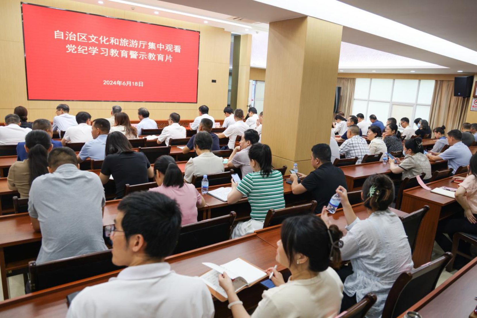 为深入开展党纪学习教育,提升党员干部学纪、知纪、明纪、守纪能力,6月18日上午,自治区文化和旅游厅组织厅机关全体在家人员观看由自治区纪委监委组织制作的党纪学习教育警示教育片。