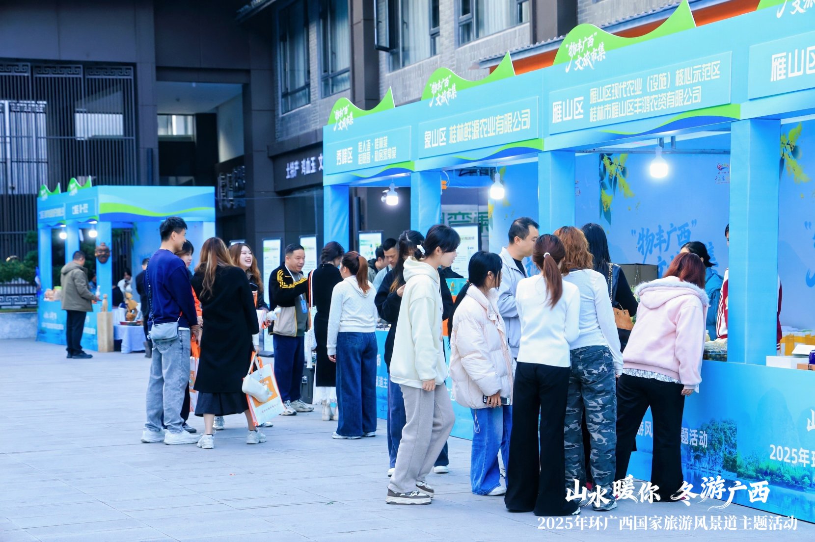 与推介会同步在益田西街举行的,还有集文化展示、特产展销、美食品鉴与互动体验于一体的“物丰广西”文旅市集,以及集中呈现旅拍达人创作成果的“镜观桂林”旅拍作品展。游客与嘉宾在此可一站式领略丰富的广西文创商品、非遗技艺和民族风情,并通过影像沉浸式感受环广西国家旅游风景道的无限魅力,收获从“看到”到“感受到”的体验升级,全身心沉浸于“冬游广西”美好旅程。