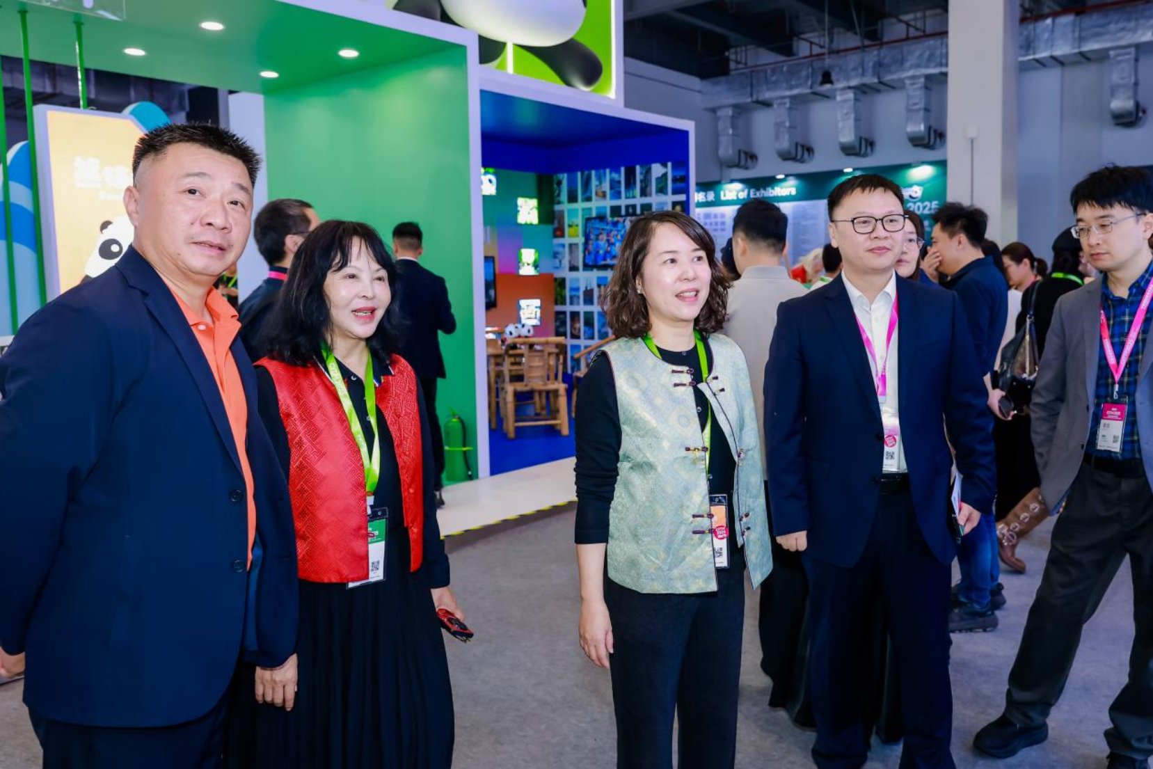 老王论坛 党组副书记、副厅长林霖(左三)指导场馆现场展示工作