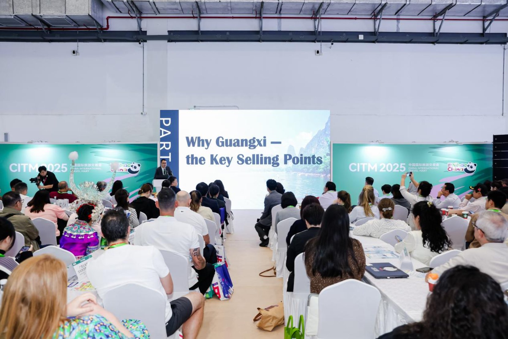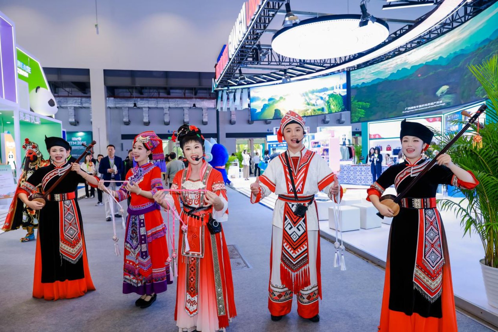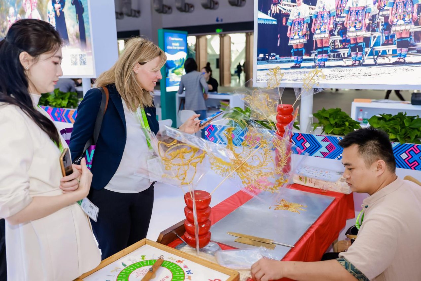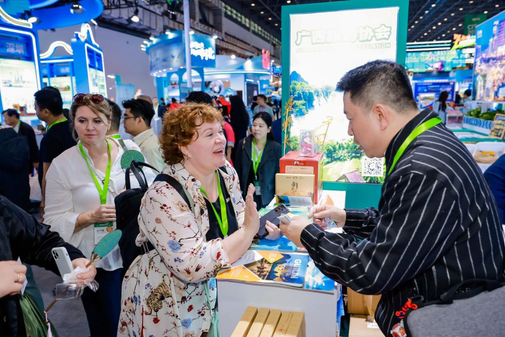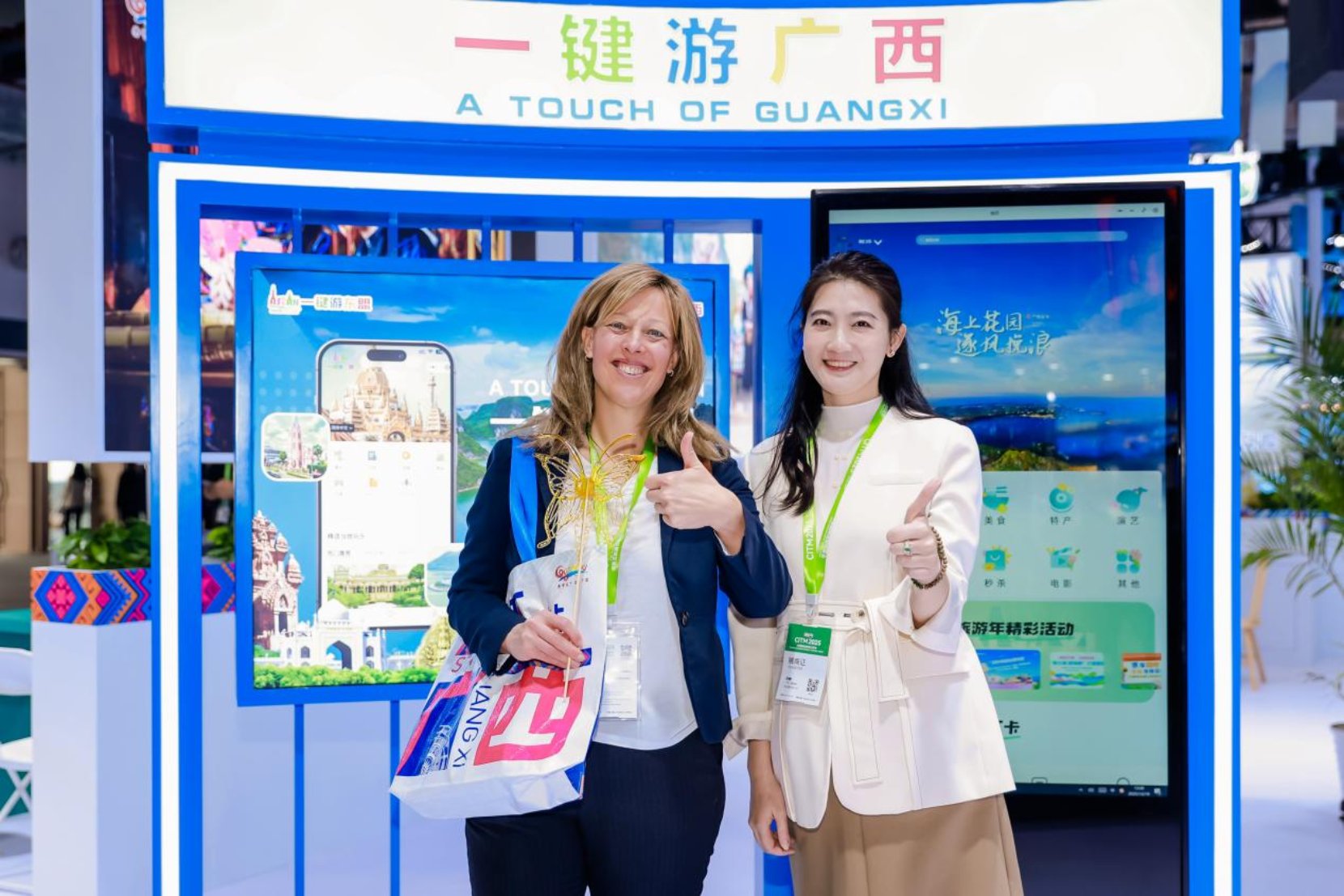 广西此次参展参会,收获颇丰。我区入境旅游企业总体接待外宾人数约750人次,外宾咨询量达1000人次,有效洽谈数量约150人次,精准高效地对接为广西入境游的发展注入新的活力。此外,壮锦、糖画、珍珠、六堡茶等非遗产品备受各国游客青睐,总销售额超10万元,凸显了全球各地游客对广西好物的认可与喜爱。