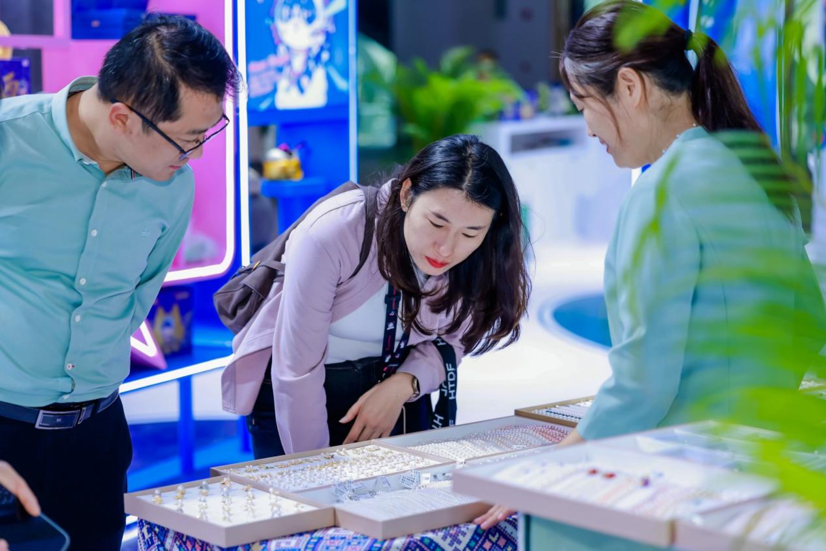 游客挑选珍珠饰品