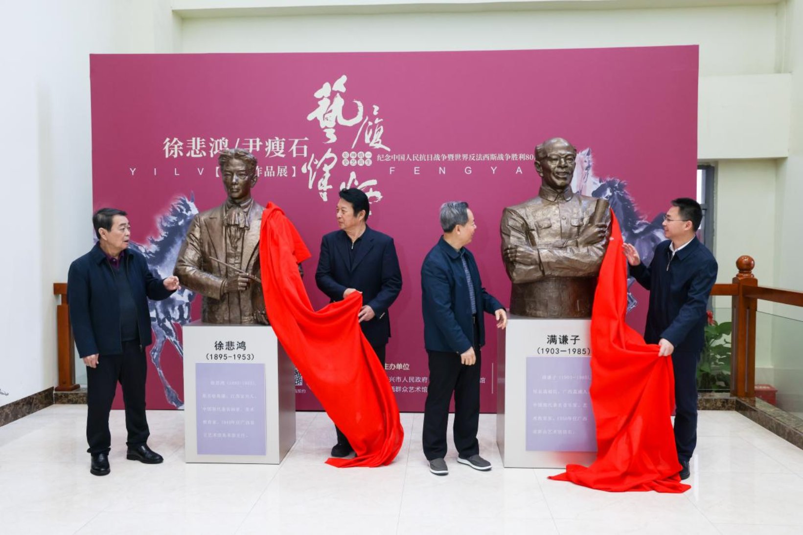 开幕式后,与会嘉宾共同为徐悲鸿先生及广西现代艺术教育先驱满谦子先生的雕像揭幕。